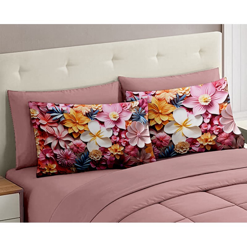 Trasforma la tua camera da letto in un'oasi di comfort e stile con il nostro set completo per letto matrimoniale della collezione. Realizzato in cotone di prima scelta, questo set garantisce una morbidezza impareggiabile e una freschezza duratura, ideale per cullare i tuoi sogni ogni notte. Comprende un lenzuolo di sopra, un lenzuolo di sotto con angoli a molla per una vestibilità perfetta, e due fodere in cotone di alta qualità. Come regalo speciale, riceverai due fodere aggiuntive con una vivace stampa digitale, disponibili in una varietà di colori per portare un tocco di natura esotica nella tua camera. Questo set è la scelta ideale per chi cerca di unire il comfort alla bellezza, creando un ambiente rilassante e accogliente.