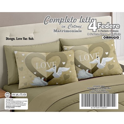 Set Completo Letto Matrimoniale Love - Cotone Premium con Fodere Stampate in Omaggio