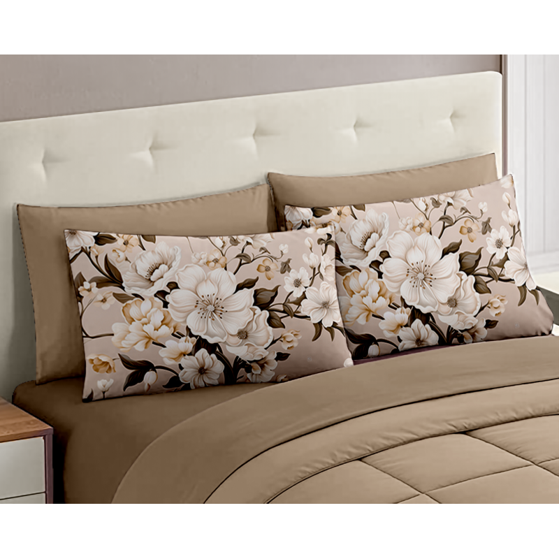 Trasforma la tua camera da letto in un'oasi di comfort e stile con il nostro set completo per letto matrimoniale della collezione. Realizzato in cotone di prima scelta, questo set garantisce una morbidezza impareggiabile e una freschezza duratura, ideale per cullare i tuoi sogni ogni notte. Comprende un lenzuolo di sopra, un lenzuolo di sotto con angoli a molla per una vestibilità perfetta, e due fodere in cotone di alta qualità. Come regalo speciale, riceverai due fodere aggiuntive con una vivace stampa digitale, disponibili in una varietà di colori per portare un tocco di natura esotica nella tua camera. Questo set è la scelta ideale per chi cerca di unire il comfort alla bellezza, creando un ambiente rilassante e accogliente.