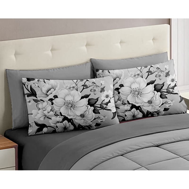 Trasforma la tua camera da letto in un'oasi di comfort e stile con il nostro set completo per letto matrimoniale della collezione. Realizzato in cotone di prima scelta, questo set garantisce una morbidezza impareggiabile e una freschezza duratura, ideale per cullare i tuoi sogni ogni notte. Comprende un lenzuolo di sopra, un lenzuolo di sotto con angoli a molla per una vestibilità perfetta, e due fodere in cotone di alta qualità. Come regalo speciale, riceverai due fodere aggiuntive con una vivace stampa digitale, disponibili in una varietà di colori per portare un tocco di natura esotica nella tua camera. Questo set è la scelta ideale per chi cerca di unire il comfort alla bellezza, creando un ambiente rilassante e accogliente.