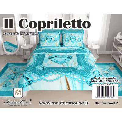 Aggiungi un tocco di eleganza moderna alla tua camera da letto con il nostro copriletto matrimoniale Diamond. Questo copriletto, dalle dimensioni generose di 270x260 cm, è perfetto per trasformare il tuo letto in un punto focale di stile e comfort. La stampa digitale dettagliata, disponibile in una selezione di colori sofisticati, offre un design contemporaneo che si adatta a qualsiasi ambiente, da quello moderno a quello classico. Realizzato con tessuti di alta qualità, questo copriletto non solo abbellisce il tuo letto ma offre anche una leggera copertura per le notti più fresche, garantendo eleganza e funzionalità tutto l'anno.