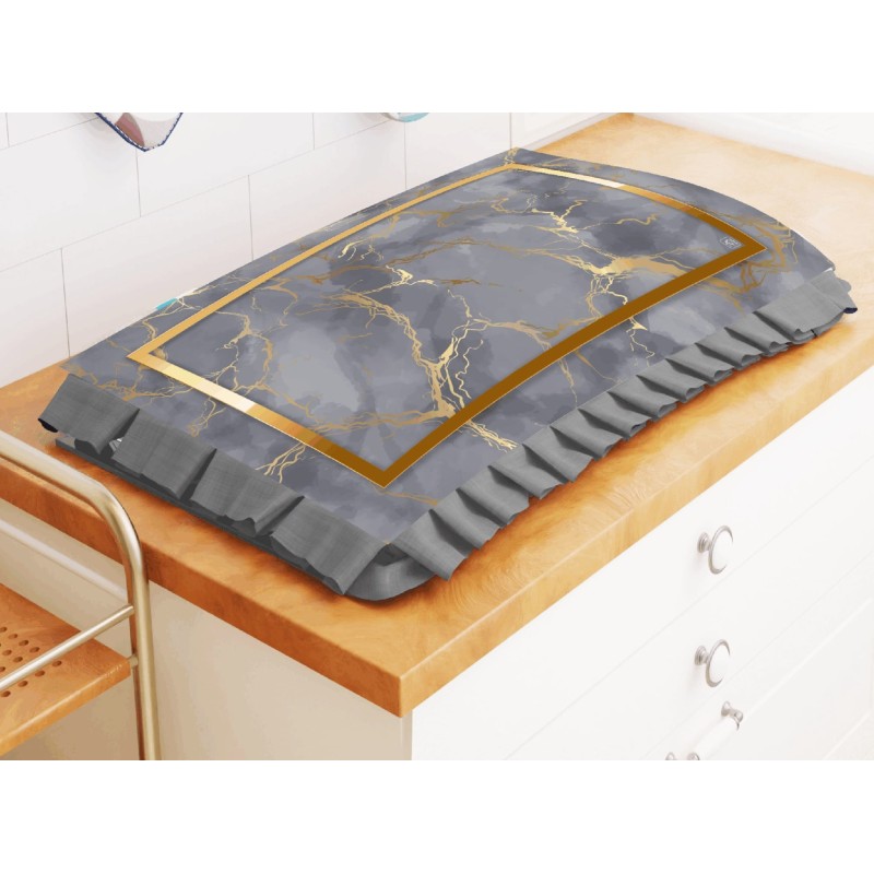 🎨 Disponibile in 7 varianti colore: rosa, beige, bianco, grigio, ottanio, rosso e nero, tutte con raffinata stampa digitale effetto marmo con vivaci venature dorate e cornice oro perimetrale per un look moderno e di grande impatto visivo.