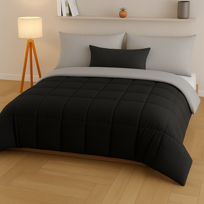🖤 Design Moderno e Minimal – Trapunta matrimoniale nei toni del nero e grigio chiaro, perfetta per camere eleganti e contemporanee.