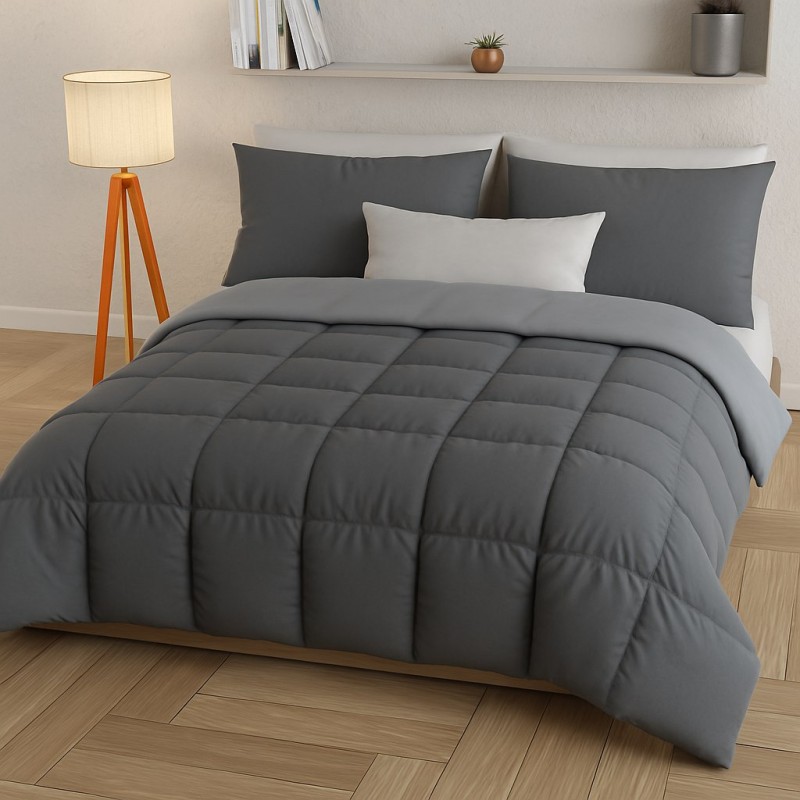 La trapunta matrimoniale bicolore grigio antracite e grigio chiaro unisce estetica e praticità in un design sobrio e moderno.