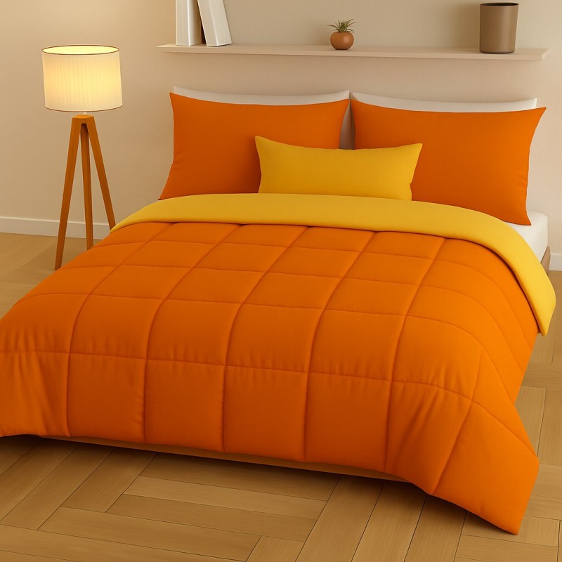 La trapunta matrimoniale bicolore arancio e giallo miele porta un tocco di allegria e calore nella tua camera.
