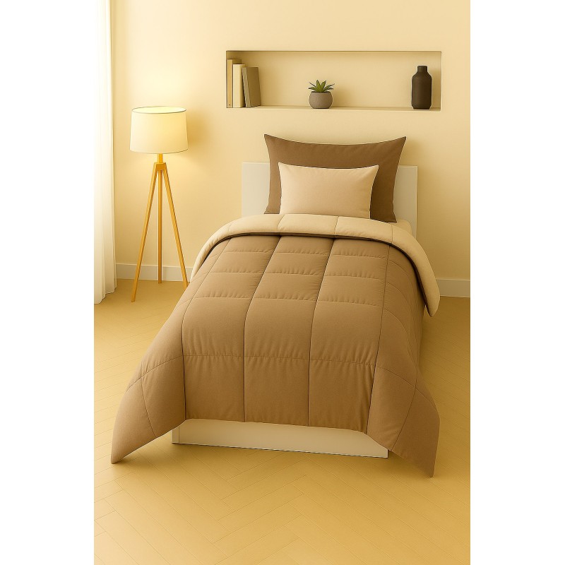 La trapunta singola bicolore beige e nocciola coniuga stile e comfort in un design sobrio e naturale.