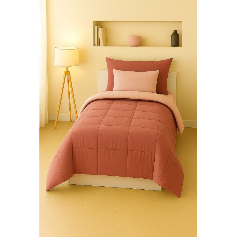 🌸 Colori Caldi e Raffinati – Trapunta singola bicolore terracotta e rosa cipria, ideale per camere eleganti e accoglienti.