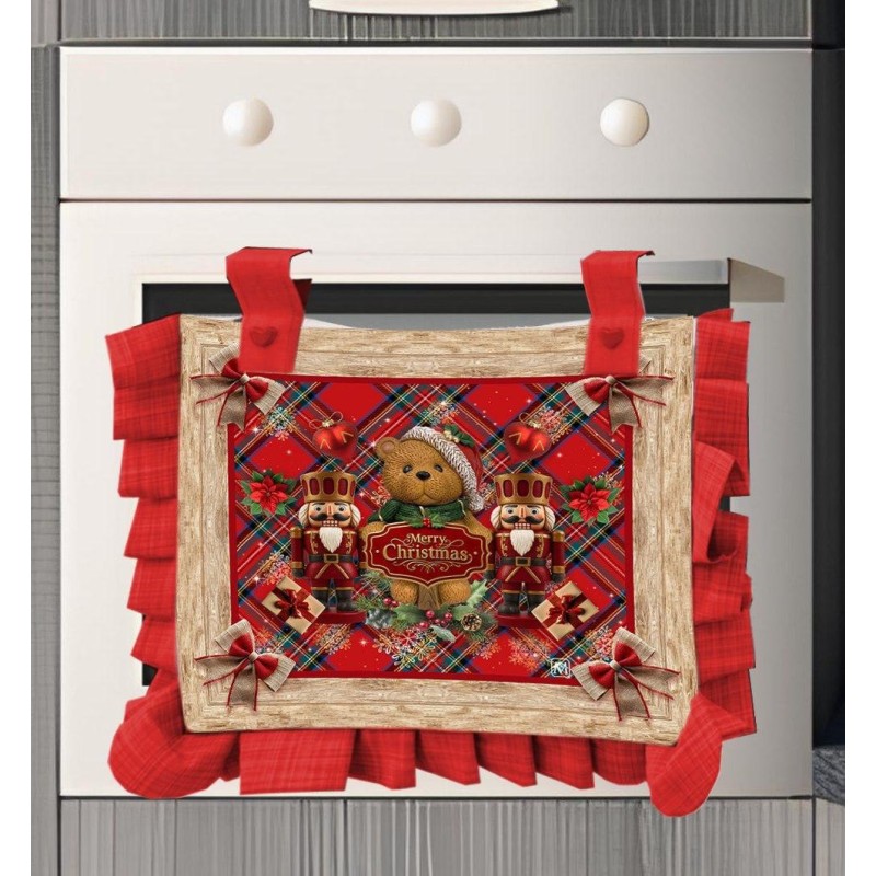 Il copriforno natalizio scozzese con orsetto e schiaccianoci è l’accessorio perfetto per vestire la cucina a festa.