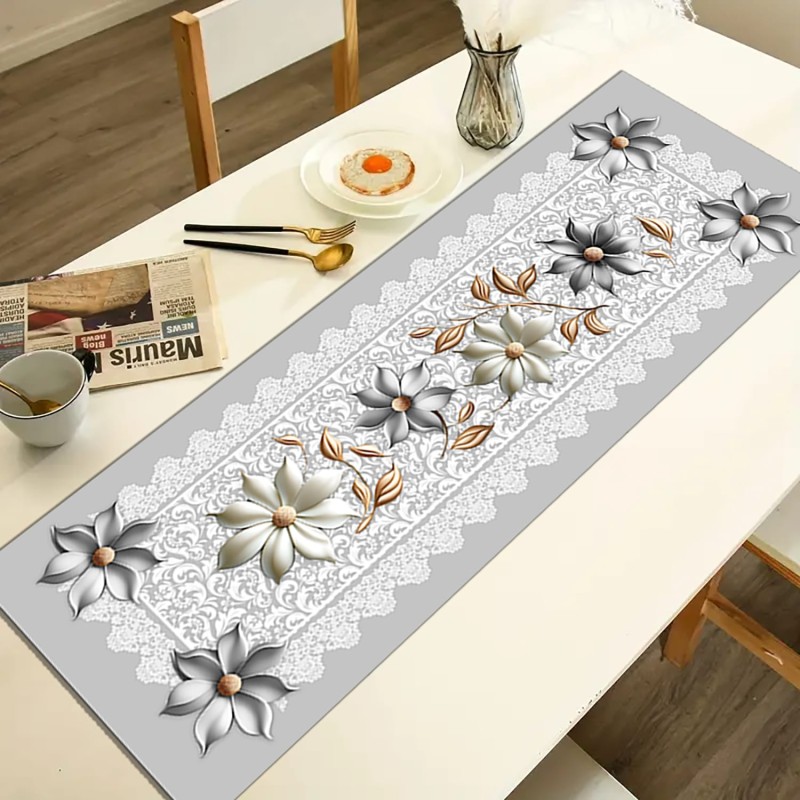 🌸 Stampa floreale 3D esclusiva ispirata alle ceramiche artistiche: fiori tridimensionali dai petali morbidi e decorazioni in pizzo bianco donano alla tavola un'eleganza senza tempo e un tocco di raffinatezza davvero unico.