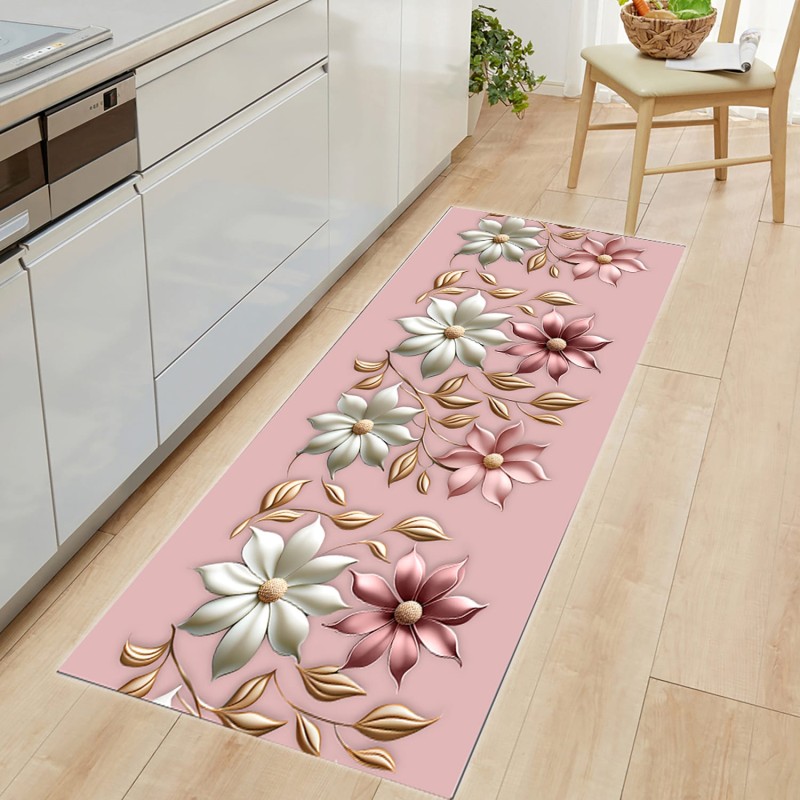 Tappeto Cucina Passatoia Linea Ceramica – Fantasia Floreale 3D | Antiscivolo Shabby Chic