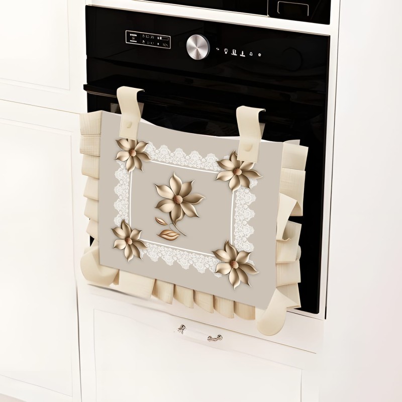 Copriforno 40x50 cm Linea Ceramica 100% Poliestere | Stampa Floreale 3D con Balza | 4 Varianti Colore