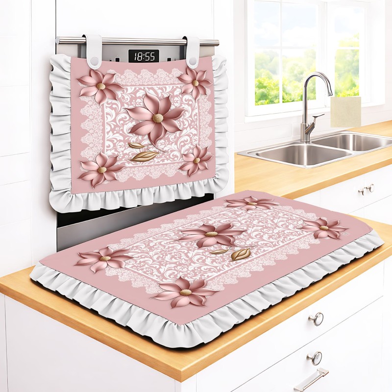 Set Copriforno e Copri Fornello Linea Ceramica 100% Poliestere | Floreale 3D | 3 Colori