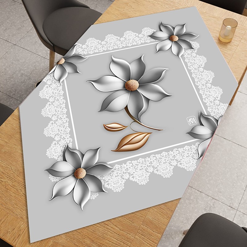 Il Quadrato da Tavola Linea Ceramica è l'accessorio perfetto per completare e coordinare l'arredo della sala da pranzo con gli altri prodotti della stessa linea. La stampa digitale ad alta risoluzione riproduce il motivo floreale tridimensionale con fiori dai petali lucidi e dettagli dorati su sfondo con cornice a volute bianche. Disponibile in tre varianti: Beige champagne, Grigio e Rosa cipria. Con 90x90 cm si posiziona in diagonale sul tavolo creando un elegante effetto a rombo. Realizzato in 100% poliestere resistente e lavabile. Perfetto da abbinare a tutti gli altri accessori coordinati della Linea Ceramica per una casa completamente armoniosa.