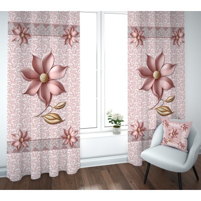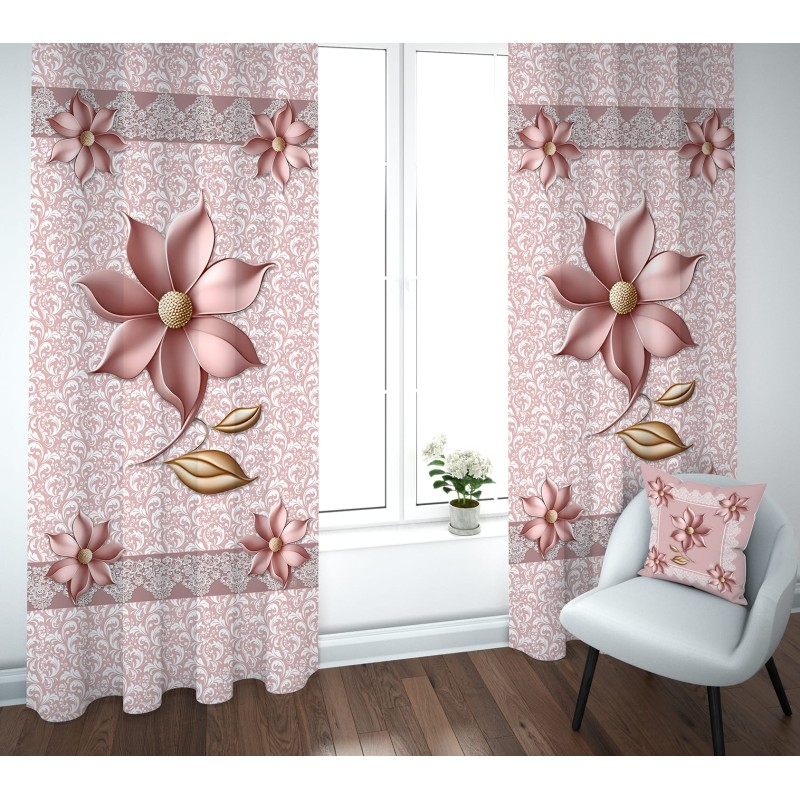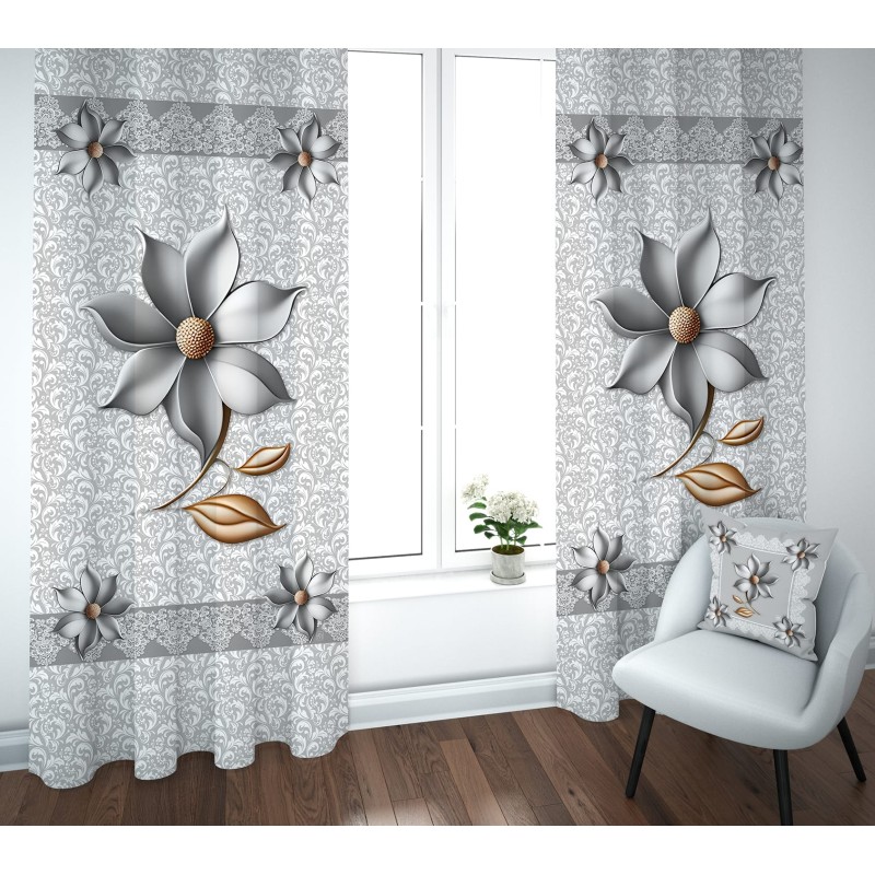 Coppia di tende con motivo floreale effetto ceramica 3D, caratterizzate da dettagli in rilievo e finiture curate che donano un tocco sofisticato e moderno ad ogni ambiente domestico.
