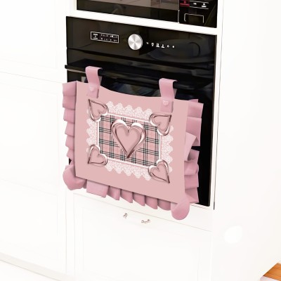 Copriforno 40x50cm Linea Cuore con Balza e Ganci – 100% Poliestere – Beige, Grigio o Rosa – Cucina Country Chic