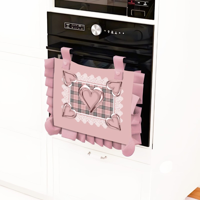 💛 Stampa cuore 3D con decori tartan e pizzo: il motivo con cuori tridimensionali, riquadro a quadri e delicati inserti in pizzo bianco trasforma il forno in un elemento d'arredo raffinato ed elegante dalla forte personalità.