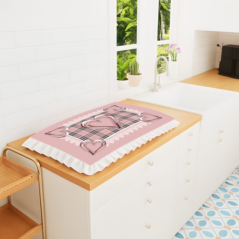 💛 Stampa cuore 3D con decori tartan e pizzo: il motivo con cuori tridimensionali, riquadro a quadri e inserti in pizzo bianco regala alla cucina un tocco country chic raffinato ed elegante dal grande impatto visivo.