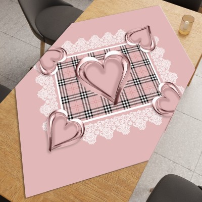 Quadrato Linea Cuore Centrotavola con Stampa Cuore 3D – 100% Poliestere – Beige, Grigio o Rosa