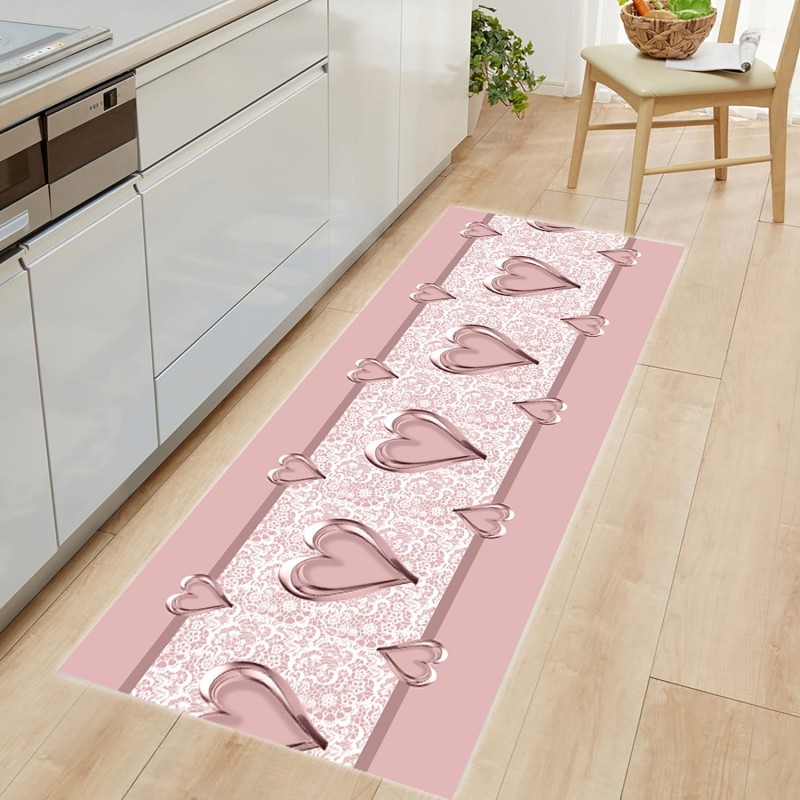 Tappeto Cucina Runner Linea Cuore con Stampa Cuori 3D – 100% Poliestere – Beige, Grigio o Rosa