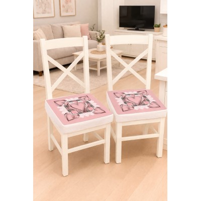 Coppia Cuscini Sedia con Fascia Elastica Linea Cuore Stampa Cuore 3D – 100% Poliestere – Beige, Grigio o Rosa