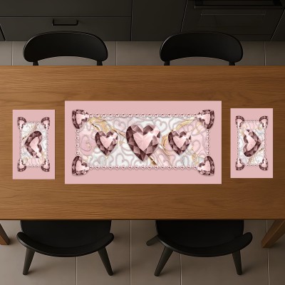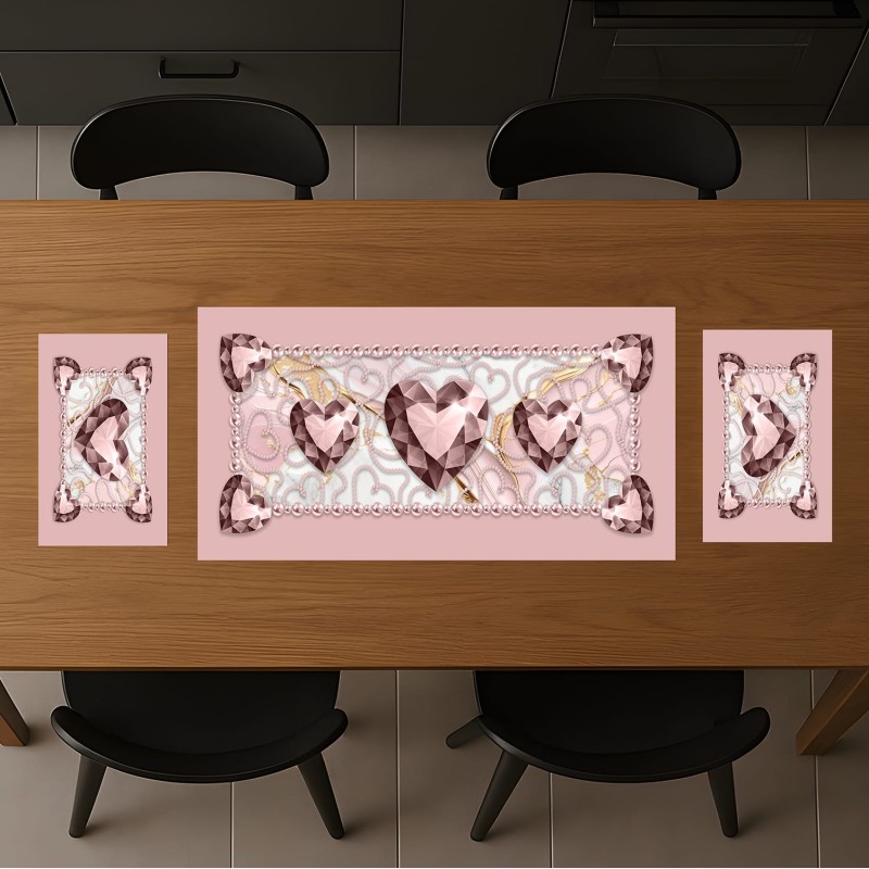 Tris da Tavola Linea Diamante Runner e 2 Tovagliette Cuori Gioiello – 100% Poliestere – 4 Colori