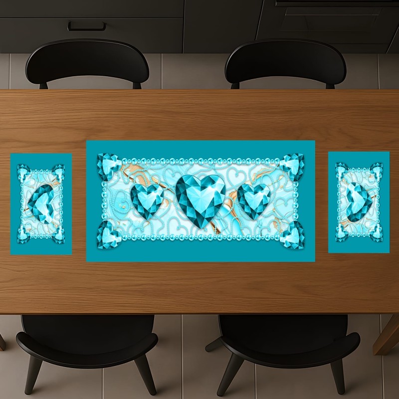 💎 Stampa cuore taglio diamante con perle e sfondo marmorizzato: il cuore sfaccettato centrale, i diamanti angolari, la bordura di perle coordinate e le venature dorate sul fondo marmo creano un effetto lussuoso e di grande impatto visivo.