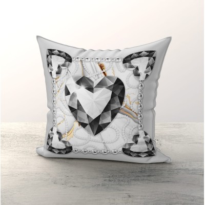 💎 Stampa cuori taglio diamante in sequenza con perle e sfondo marmorizzato: la banda centrale con cuori sfaccettati disposti in diagonale, strisce di perle laterali e venature dorate sul fondo marmo crea un effetto visivo lussuoso e di grande personalità.