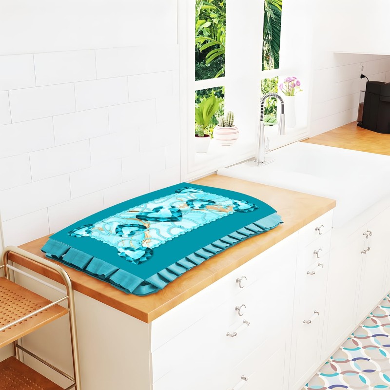 🎀 Balza decorativa perimetrale coordinata al colore: il volant morbido che corre lungo tutto il bordo aggiunge eleganza e morbidezza, nascondendo il piano cottura quando non è in uso con un effetto visivo curato e di grande personalità.
