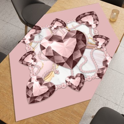 💎 Stampa cuore taglio diamante con decori a perle e marmo: il motivo con cuori sfaccettati come gemme preziose, bordura di perle e sfondo marmorizzato crea un effetto visivo lussuoso, originale e di grande impatto decorativo.