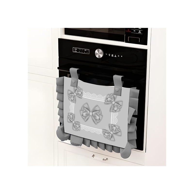 ✨ La cornice superiore con motivo in pizzo e il grande fiocco centrale creano un effetto scenografico e di grande pregio. I fiocchi in rilievo lungo il bordo completano un design elegante e femminile.