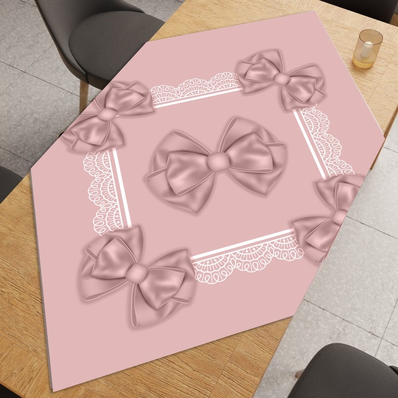 🎀 Tovaglia per 6 posti con eleganti fiocchi in rilievo lungo i bordi, fascia a pizzo decorativa e grande fiocco centrale sul piano. Il design romantico e raffinato rende ogni tavola un elemento d'arredo unico.