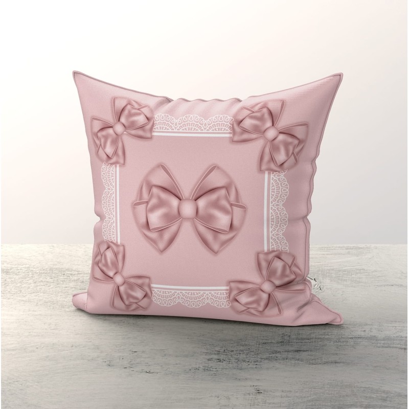Coppia Cuscini Decorativi 42x42 Linea Fiocco Stampa Fiocchi 3D – 100% Poliestere – Beige, Grigio o Rosa