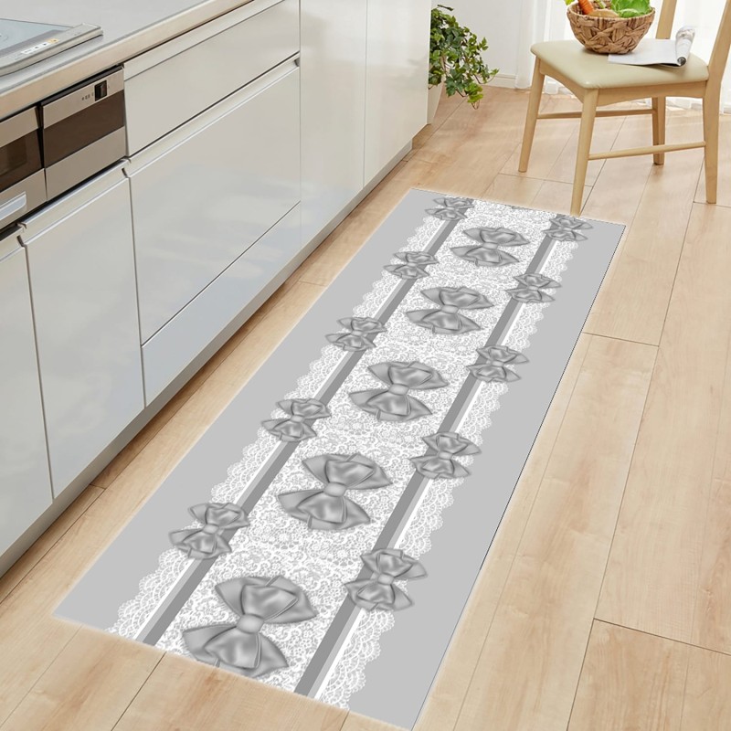 🎀 Tappeto cucina con eleganti fiocchi in rilievo disposti lungo tutta la superficie e fascia centrale a pizzo. Il design romantico e raffinato aggiunge un tocco di femminilità e stile a ogni ambiente.
