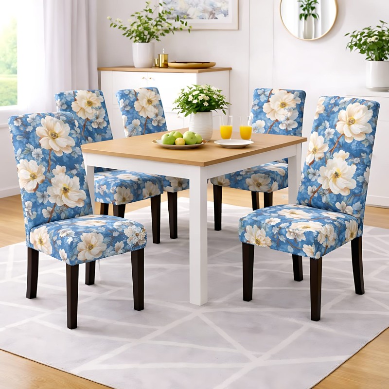 Rinnova la tua sala da pranzo con questi eleganti copriasedia elasticizzati in fantasia floreale acquarello, disponibili in 5 varianti colore: turchese, rosa cipria, grigio perla, blu cobalto e beige écru. Ogni colorazione presenta grandi fiori bianchi e crema che si armonizzano con qualsiasi stile d'arredo, dal classico al moderno. Il set include 6 fodere in tessuto elasticizzato con misure universali: schienale largo 40-60 cm, altezza 45-52 cm, seduta 35-45 cm (spessore 8-10 cm). Aderiscono perfettamente senza spostarsi e si sfilano facilmente per il lavaggio in lavatrice, mantenendo colori vivaci e vestibilità ottimale nel tempo.
