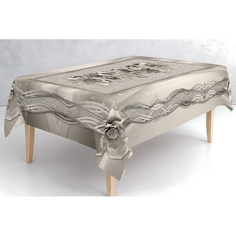 Apparecchia anche le tavole più grandi con classe grazie alla tovaglia da 12 posti della Linea Iron, disponibile nella misura 240x145 cm in 100% poliestere. La raffinata stampa digitale 3D ad alta definizione riproduce una preziosa bordura ornamentale con fascia glitter scintillante e grande fiore tridimensionale applicato agli angoli, disponibile in quattro varianti colore: beige tortora, grigio argento, oro e rosa cipria. La misura generosa garantisce un'ampia ricaduta laterale per un effetto sempre elegante, mentre il materiale resistente e lavabile in lavatrice assicura praticità e durata nel tempo. Abbinala al runner e al centro tavola della Linea Iron per un coordinato completo.
