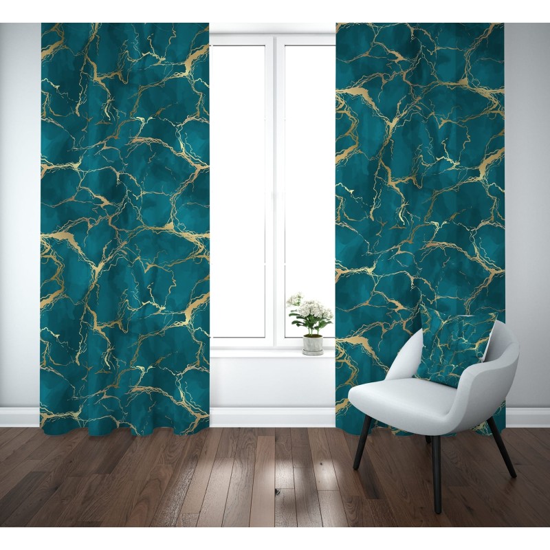 Coppia Tende Effetto Marmo con Venature Dorate 140x290 cm – Disponibili in 7 Colori