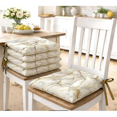 Rinnova le tue sedie con i cuscini coprisedia della Linea Marmo, disponibili in set da 6 pezzi da 40x40 cm in 100% poliestere. La raffinata stampa digitale ad alta definizione riproduce un elegante effetto marmo con vivaci venature metalliche dorate, disponibile in sette varianti colore: grigio, rosso, beige, bianco, nero, petrolio e rosa. I pratici 4 laccetti angolari fissano il cuscino alla sedia in modo stabile eliminando slittamenti fastidiosi. L'imbottitura morbida garantisce comfort prolungato durante i pasti, mentre la fodera removibile e lavabile in lavatrice assicura una manutenzione semplice e rapida per un risultato sempre impeccabile.