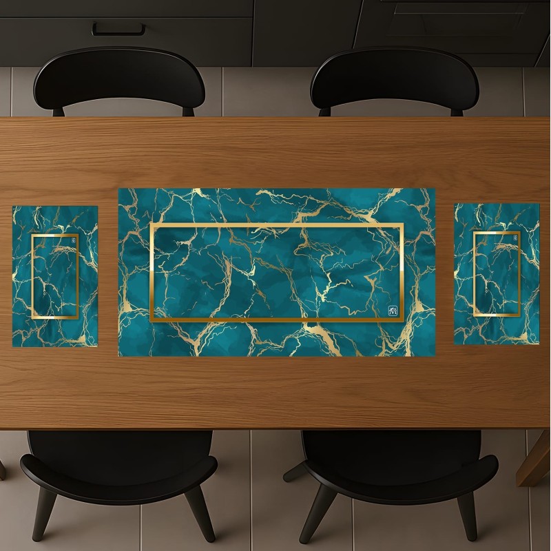 Set Tris Centrotavola Effetto Marmo con Venature Dorate – Runner + 2 Tovagliette, 6 Colori
