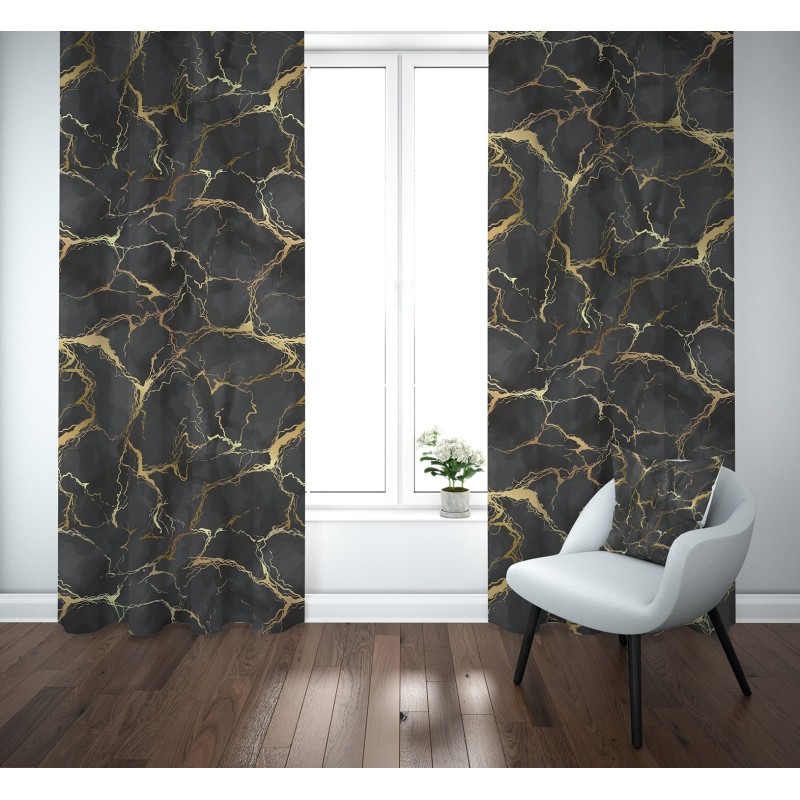 Coppia Tende Effetto Marmo con Venature Dorate – Pannelli 140x290 cm in Poliestere