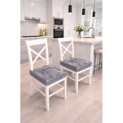 Coppia Cuscini Sedia con Fascia Elastica Effetto Marmo 40x40 cm – 100% Poliestere Linea Marmo
