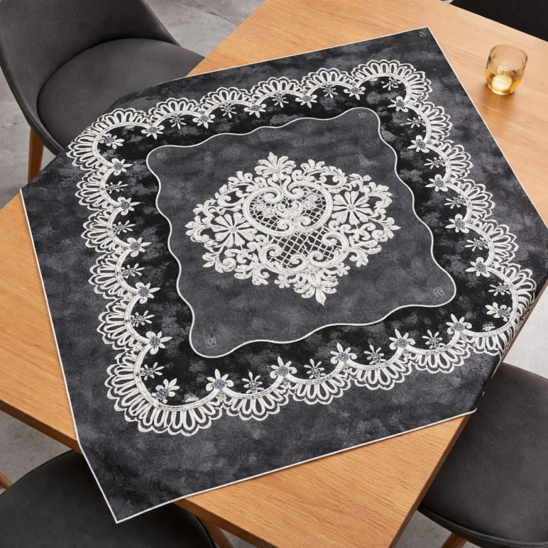 Il centrotavola quadrato della Linea Reprodè in tessuto Fiammetta 100% poliestere è l'accessorio perfetto per chi desidera una tavola elegante e dall'atmosfera romantica. La stampa digitale esclusiva con motivo a pizzo e medaglione centrale barocco su sfondo effetto vintage crea un effetto decorativo sofisticato e di grande impatto visivo. Le dimensioni di 90x90 cm lo rendono ideale per tavoli da 4 posti, con una caduta armoniosa su tutti i lati. Disponibile in 6 colorazioni – beige, bianco/nero, grigio, nero, ottanio e rosa. Prodotto Made in Italy, garantisce qualità, resistenza e facilità di manutenzione.