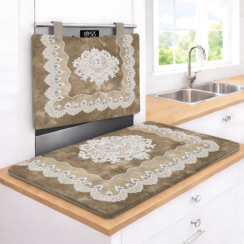 ✨ Il dettagliato design con bordo a pizzo ondulato e medaglione centrale barocco trasforma questo accessorio funzionale in un vero elemento decorativo, aggiungendo un tocco shabby chic romantico e raffinato alla cucina.