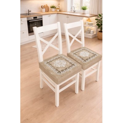 ✨ Il dettagliato design con motivo a pizzo su sfondo effetto vintage trasforma ogni sedia in un elemento decorativo di grande charme, aggiungendo un tocco romantico e raffinato alla cucina o alla sala da pranzo.