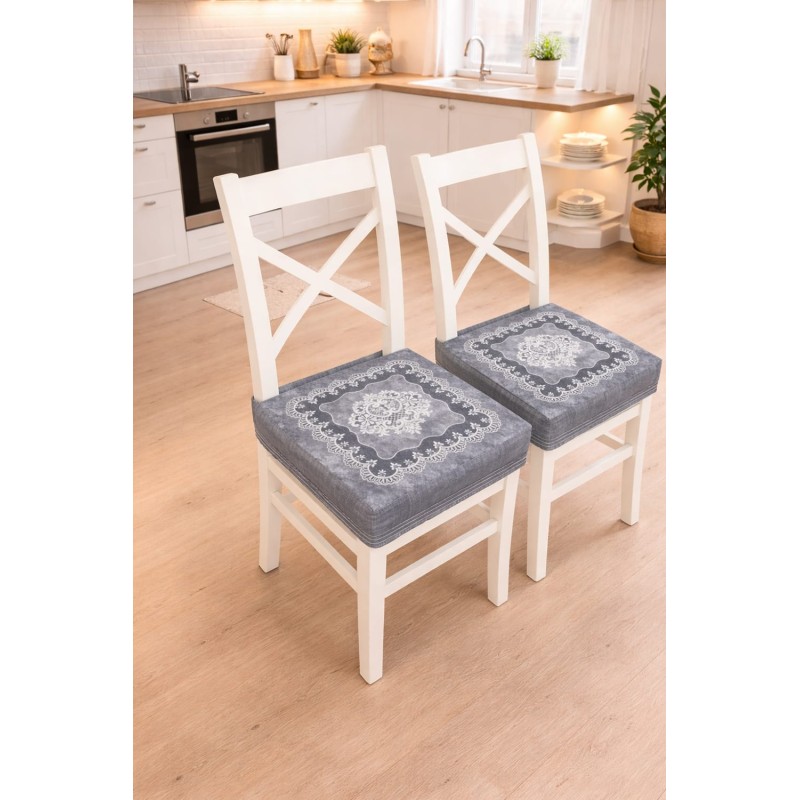 Il vesto cuscino sedia della Linea Reprodè in tessuto Fiammetta è la soluzione ideale per rinnovare le sedie di cucina e sala da pranzo con stile e praticità. Il raffinato motivo a pizzo con medaglione centrale su sfondo effetto vintage dona un aspetto shabby chic di grande impatto decorativo. Venduto in coppia con fascia elastica perimetrale, si applica in pochi secondi e si adatta a cuscini di varie dimensioni. Disponibile in 7 colorazioni – ottanio, bianco/nero, beige, grigio, rosa, antracite e tortora – per abbinarsi a ogni arredo. Il tessuto Fiammetta garantisce morbidezza, resistenza e facilità di lavaggio.