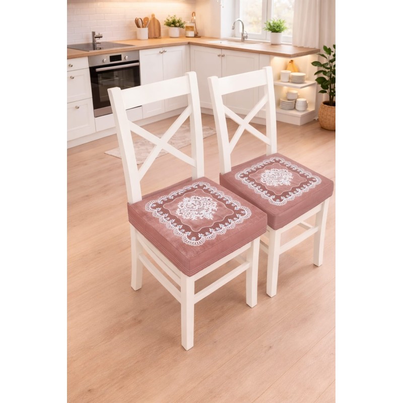 ✨ Il dettagliato design con motivo a pizzo su sfondo effetto vintage trasforma ogni sedia in un elemento decorativo di grande charme, aggiungendo un tocco romantico e raffinato alla cucina o alla sala da pranzo.