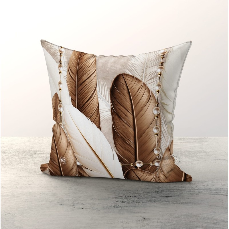 Coppia Cuscini Decorativi 42x42 cm Stampa Piume Tropicali con Perle – 100% Poliestere Linea Tropical