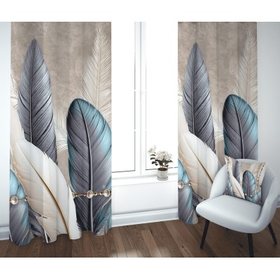 Coppia Tende Stampa Piume Tropicali con Perle – Pannelli 140x290 cm in 100% Poliestere Linea Tropical