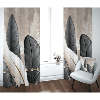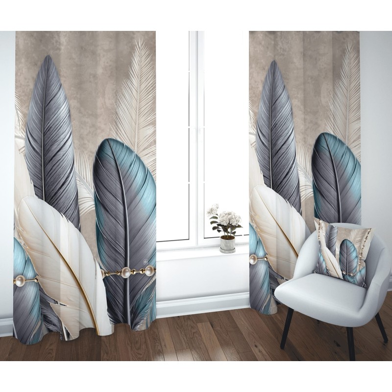 Le tende Linea Tropical trasformano ogni finestra in un elemento d'arredo sofisticato e contemporaneo. La stampa digitale raffigura grandi piume tropicali che si stagliano maestose su un fondo neutro effetto cemento, arricchita da una delicata catena decorativa con perle dorate di grande eleganza. Realizzate in 100% poliestere resistente e di semplice manutenzione, i pannelli da 140x290 cm sono venduti in coppia per una vestizione generosa e scenografica di qualsiasi finestra. Disponibili in cinque eleganti colorazioni per abbinarsi a qualsiasi stile d'arredo, dal moderno al glamour.