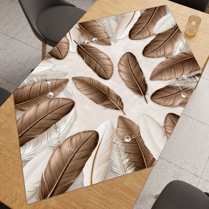 Centrotavola Quadrato 90x90 cm Stampa Piume con Perle – 100% Poliestere Linea Tropical