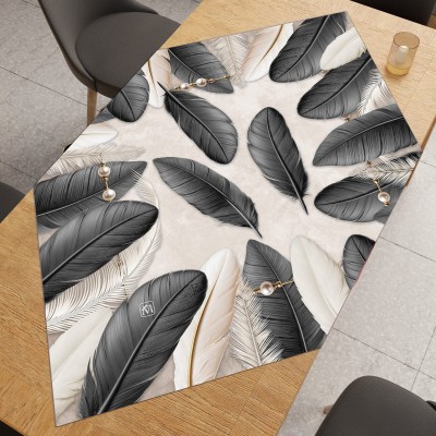 Centrotavola Quadrato 90x90 cm Stampa Piume con Perle – 100% Poliestere Linea Tropical